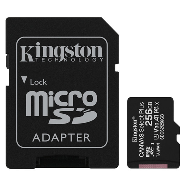 Kingston's Canvas Select Plus microSD is compatible with Android devices and designed with A1-rated performance. It offers improved speed and capacity for loading apps faster and capturing images and videos. Powerful in performance, speed and durability, the Canvas Select Plus microSD is designed for reliability when shooting and developing high-resolution photos or filming and editing full HD videos. Kingston Canvas cards are tested to be durable in the harshest environments and conditions so you can take them anywhere with confidence that your photos, videos and files will be protected. - Class 10 UHS-I speeds up to 100MB/s- Optimised for use with Android devices- Capacity 256GB- Durable