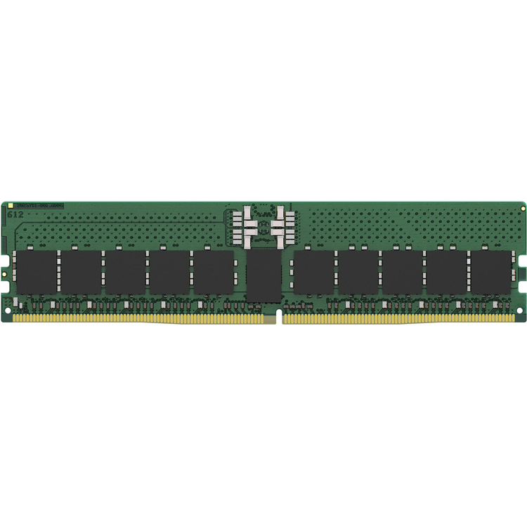 Kingston's KSM56R46BD8PMI-32HAI is a 4G x 80-bit (32GB) DDR5-5600 CL46 SDRAM (Synchronous DRAM), 2Rx8, ECC, memory module, based on twenty 2G x 8-bit FBGA components. The SPD is programmed to JEDEC standard latency DDR5-5600 timing of 46-45-45 at 1.1V. Each 288-pin DIMM uses gold contact fingers.