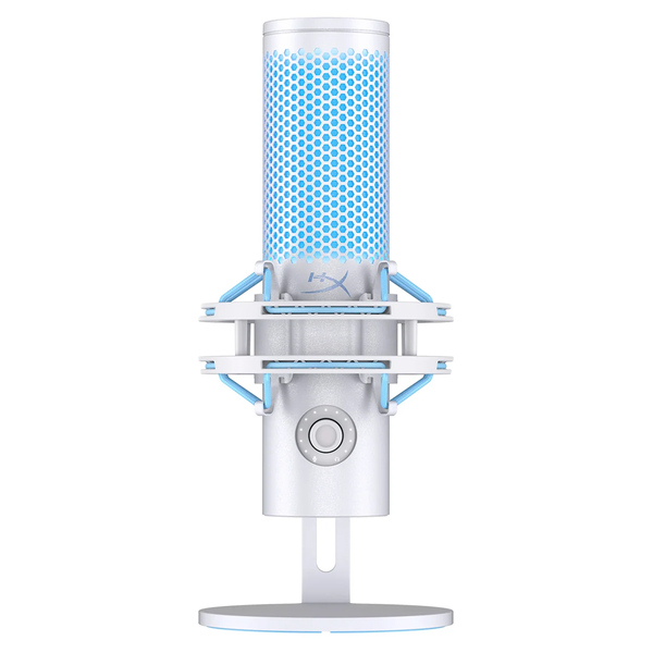 The HyperX QuadCast 2 refines everything that made the original such a favorite amongst gamers, streamers, and content creators around the world. All the fan-favorite features are still here: the iconic stunning lighting, the tap-to-mute sensor, 4 selectable polar patterns, the 3.5mm headphone jack, and included shock mount and desktop stand but now with a range of innovative additions packaged in a new sleek, full aluminum silhouette. QuadCast 2 features upgraded 24-bit, 96kHz recording for a studio-quality recording experience. It also features a redesigned detachable shock mount with improved performance and innovative spring-loaded pins, making removal easy and allowing the use of universal shock mounts. In response to our fan's feedback, QuadCast 2 now includes a multi-function knob so you can do everything on-board without needing to alt-tab. The knob allows users to choose between microphone gain, playback volume, and microphone monitoring volume, and can also switch polar patterns. The LED indicator also makes it easy to determine the current mic status without the hassle of going into the software. Users can choose different lighting effects and tune their mic via HyperX NGENUITY. The HyperX QuadCast 2 - the new standard for streaming microphones. - Hi-Res Studio-Quality Recording- Tap-to-Mute Sensor- Intuitive On-Board Controls- Mic Status LED indicator- Compatibility: PC, Mac, PS4, PS5, Nintendo Switch, Steam Deck. Software Compatibility: HyperX NGENUITY. Hi-Res Studio-Quality Recording The QuadCast 2 will help take your recordings to the next level by capturing more sound detail and allowing the subtleties of your voice to shine through. Tap-to-Mute Sensor Simply tap the top of the QuadCast 2 to prevent audio accidents and quickly mute the microphone. Intuitive On-Board Controls The multifunction knob lets you quickly and easily adjust your microphone gain, playback volume, monitoring volume, and switch between 4 polar patterns. Mic Status LED indicator The easy-to-see LED indicator and customizable grille lighting lets you spot whether or not the mic is live. Removable Shock Mount The pre-attached vibration-dampening shock mount is easily detachable thanks to the spring-loaded pins. The shock mount joint is also compatible with 3/8" and 5/8" threading, for easy setups. Stunning HyperX Red Lighting Give your streams and desk setup a touch of signature HyperX red with the QuadCast 2's stunning lighting. Customize the lighting when live or muted in HyperX NGENUITY. Four Selectable Polar Patterns Optimize your recording by selecting whichever of the versatile QuadCast 2's polar patterns (cardioid, omnidirectional, bi-directional, or stereo) best suits your audio capture needs. Customizable in HyperX NGENUITY Tune your microphone, adjust mic monitoring, and customize the QuadCast 2's lighting all from simple, powerful HyperX NGENUITY Software.