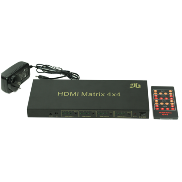 AVS AHDMX44HDMI 4x4 Matrix with IR Control A HDMI matrix switcher is a convenient way to route high definition video and audio from any of the four sources to any of the four displays. - HDMI, HDCP 1.2 and DVI compliant- Support full 3D pass-through- Support high resolution up to 1080P- Super IR control system, IR transport channel can be forward or backward per your installation- Support CEC bypass- External and internal EDID settings