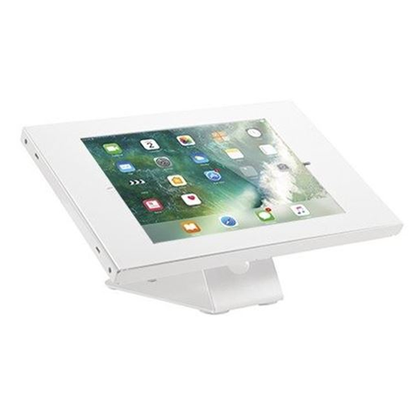 BRATECK Anti-Theft Countertop/Wall Mount Tablet Kiosk. For 9.7/10.2 iPad, 10.5 iPad Air/ iPad Pro, 10.1 Samsung Galaxy Tab A 2019. Heavy-Duty Steel Construction, 90° Rotation. With lockable enclosure and high-quality steel construction, PAD32-05 is a secure, stylish and affordable choice for using tablets to convey information or advertising in a public setting. Users can put it on the countertop or mount it on the wall for temporary or permanent mounting needs. Landscape to portrait orientation enclosure rotation can adapt to needs of the contents. Cable management keeps wiring organized and protected. - Heavy-Duty Steel Construction: provides extra strength and durability- 90° Rotation: for easily holding your iPad in portrait or landscape orientation- Anti-theft Lock with a Key: for additional security preventing any unwanted removal in the public- Precise Cutouts: for complete access to all buttons, cameras, and power cable- Rear Cable Management: for a neat and clean look