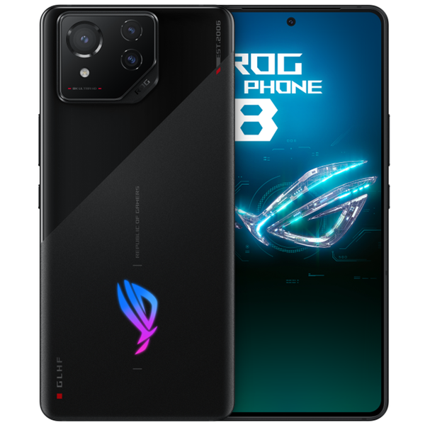 Pro-level camera The ROG Phone 8 has an advanced tri-camera system for endless possibilities. Capture amazing ultrawide shots, zoom in on distant objects, or record super-steady videos. For more information: https://rog.asus.com/phones/rog-phone-8/*All images are simulated for illustration purpose.*AeroActive Cooler X is an additional accessory for ROG Phone 8 series and is sold separately.*AeroActive Cooler X is an additional accessory and is sold separately.*Snapdragon® is the products of Qualcomm Technologies, Inc. and/or its subsidiaries.*OZO is a registered trademark of Nokia Technologies Oy.1. Test result provided by ASUS labs, compared to ROG Phone 7 Ultimate.2. The device has been tested for water resistance using IEC 60529 standard and has achieved an IP65/68 rating. Water and dust resistance can deteriorate over time in normal usage, or if the device is damaged, repaired or taken apart. The device should never be completely submerged underwater, and should not be allowed to come into contact with seawater, brine, chlorinated water or drinks. Failure to observe correct precautions will invalidate the device warranty and the function of water and dust resistance. Water resistance is tested by submerging the device to a depth of 1.5 meters in tap water for 30 minutes. After the test the device is removed and fully dried, then checked for normal operation. Please note that the device has a USB-C charging port, and this USB-C port must be completely dry before any attempt is made at charging. For related warranty information, please refer to the product warranty card.3. This feature only support in certain software applications.4. Test result provided by ASUS labs, compared to ROG Phone 7 series. Actual performance may vary depending on conditions.5. Test result provided by ASUS labs, compared to AeroActive Cooler 7. Actual performance may vary depending on conditions.6. Test result provided by ASUS labs, compared to the warmest spot of the backcover of ROG Phone 7 while gaming. Actual performance may vary depending on conditions.Manufacturer's performance data, compared to Snapdragon® 8 Gen 2.7. The equivalent field of view on a 35mm full-frame camera.8. Uses pixel binning to output 8 MP image.10. This feature only support in certain software applications, such as game comms, IM calls and phone calls. Call quality depends on environment, carrier network conditions, and many other factors. Actual results may vary.11. 5500 mAh is equivalent capacity. Typical capacity is 2750 mAh in both battery units.12. Test result provided by ASUS labs. Actual performance may vary depending on conditions.