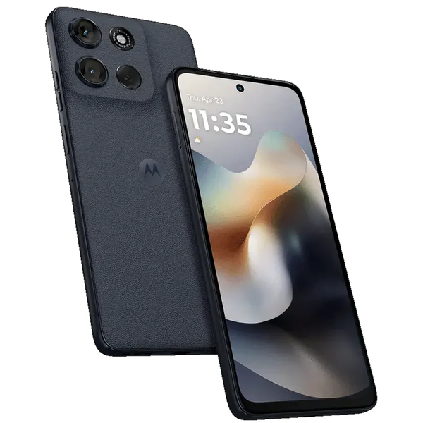 Enter new dimensions Amp up your entertainment with a bright FHD+ display and powerful stereo speakers with Dolby Atmos®. Enjoy sharp, vivid detail on the 6.7" screen, even in sunlight, with High Brightness Mode and a notchless, immersive, distraction-free design. Crystal clear shots every time Capture vibrant photos in any light with the 50MP Sony LYTIA™ 600 camera and Quad Pixel technology for sharper, more detailed images. Fit more into every shot with the ultrawide lens and snap stunning selfies with the 32MP camera, offering 4x better low-light sensitivity for brilliant results. Get feedworthy photos Capture perfect smiles with Auto Smile Capture, enhance low-light photos with Auto Night Vision, and create stunning portraits with AI-powered Portrait mode for realistic depth and clarity. No light, no problem Auto Night Vision adjusts settings for better night photos, ensuring the image you capture matches the preview, on both rear and selfie cameras. Powered for your day Enjoy all-day use with the massive 5200mAh battery6, and power up quickly with TurboPower™ 30W charging7 for hours of use in just minutes. 5G fast performance Experience super-fast downloads and streaming with the MediaTek Dimensity 7060 processor, enhanced by RAM Boost for smooth multitasking. Enjoy the power of an octa-core processor with 5G speeds11 and ample storage for all your photos, movies, songs, and apps. Save it all With up to 256GB of built-in storage, you'll have plenty of space for photos, movies, songs, apps, and games. Plus, expand your storage by up to 1TB with a microSD™ card9 for even more content. Hello UX: your phone, your way. Create a truly personalized and secure experience by effortlessly customizing your device with your choice of fonts,colours, and icons - making it uniquely yours while keeping it protected. Following your lead Gestures make everyday actions effortless -twist your wrist to open the camera, chop twice to turn on the torch, or double tap the back of your phone to launch apps, all with with intuitive, natural movements. Create a safe space Family space lets kids learn and play safely with screen time limits, app controls, and personalised profiles for everyone.