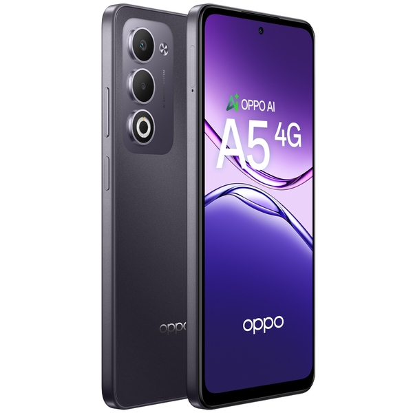 Disclaimers: * The AI features described on the page may not be included in the software version at launch. In some countries and regions, these AI features will be updated via OTA. Please refer to the features in the actual version.* An Account login may be required to access certain OPPO AI features.* OPPO AI features will vary due to regional laws and cloud-based capability of the user's location. You need an internet connection to use AI-related features.* OPPO AI features displayed on the product pages in this website (including but not limited to UI and background) are only to demonstrate the functions. These functions are part of the various software versions and may vary according to the time and place (region) of launch of the different software versions. Please refer to the functions and pages in the actual version.* Product pictures are for reference only. Please refer to the actual product. Certain product specifications and descriptions may change due to reasons such as changes in suppliers or manufacturers. The data on the page is provided by OPPO-designed technical parameters, and test data is collected from laboratories and suppliers. In actual circumstances, the data will differ slightly, depending on the test software version, specific testing environment, and specific version.1. OPPO A5 supports IP65 waterproof and dustproof rating, which can prevent splashing, water, and dust in normal use. Under controlled laboratory conditions, it has been tested to meet the IP65 level according to GB/T 4208-2017 (China)/IEC 60529 (International) standards. The IP65 waterproof conditions are as follows: (1) Nozzle inner diameter 6.3mm, distance 2.5-3m, water flow rate 12.5L/min; (2) Test time not less than 3 minutes; (3) Water temperature should not differ from the product temperature by more than 5 degrees. The splash-proof, waterproof, and dust-proof functions may decrease due to daily wear and tear. Please do not charge the phone in a damp state. Damage caused by immersion in liquids is not covered by the warranty.2. OPPO A5 has undergone durability testing, including multi-angle drop tests and high-intensity impact tests, based on MIL-STD 810H methodologies and SGS certification. These tests assess shock resistance under controlled conditions but do not guarantee damage-proof performance in real-world scenarios. As durability can be affected by individual usage and product aging, actual user experience may vary.3. The equivalent battery capacity is 6000mAh (typical value). The battery will have a battery capacity retention rate of more than 80% after 5 years of use according to OPPO lab simulation of the user's daily behaviour (fully charging and discharging once every 1.1 day). The data was obtained from OPPO Labs and will differ slightly due to the test software version and specific testing environment.4. Display brightness is collected from OPPO Labs. The actual data will differ slightly due to the test software version and specific testing environment.5. Sound volume is collected from OPPO Labs. The actual data will differ slightly due to the test software version and specific testing environment.6. The SUPERVOOCTM word mark and logos are trademarks owned by Guangdong OPPO Mobile Telecommunications Corp., Ltd. 45W SUPERVOOCTM Flash Charge means that the maximum output power of the charger is 45W. The actual output power may vary due to different environments.7. RAM Expansion adds virtual RAM to the original physical RAM.8. Glove Touch supports gloves up to 5mm thick. Splash Touch will be turned off when Glove Touch works.9. OPPO A5 with 256GB or more ROM has passed 48-Month Fluency Protection. "48-Month Fluency Protection" means that through the optimisation of software, hardware and other comprehensive technologies, OPPO A5 has passed the 48-month fluency testing in OPPO laboratory. "Fluency Protection" does not mean that there is absolutely no lag. Due to factors such as ROM, network environment and personal usage, the actual experience may be different. Please refer to the actual experience.