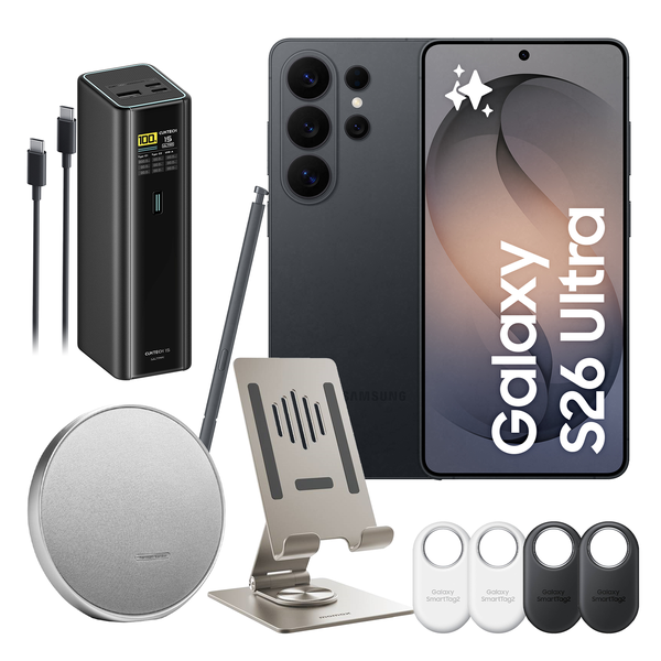 Samsung Galaxy S26 Ultra 5G Dual SIM Smartphone - 12GB+256GB - Black - Bonus Harman Kardon Onyx Studio 9 Wireless Stereo Speaker,CUKTECH No.15 Ultra Power Bank, SmartTag2(4 Pack) Momax Smartphone Stand (Woth $766)