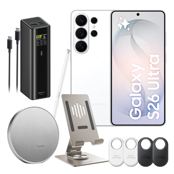 Samsung Galaxy S26 Ultra 5G Dual SIM Smartphone - 16GB+1TB - White - Bonus Harman Kardon Onyx Studio 9 Wireless Stereo Speaker,CUKTECH No.15 Ultra Power Bank, SmartTag2(4 Pack) Momax Smartphone Stand (Woth $766)