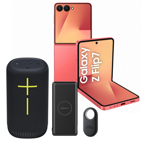 Samsung Galaxy Z Flip7 5G Dual SIM Smartphone - 12GB+256GB - Coral Red - Bonus Ultimate Ears EVERBOOM Bluetooth Speaker, Galaxy SmartTag2 1 Pack Black & Momax 10000mah Power BankWorth $606