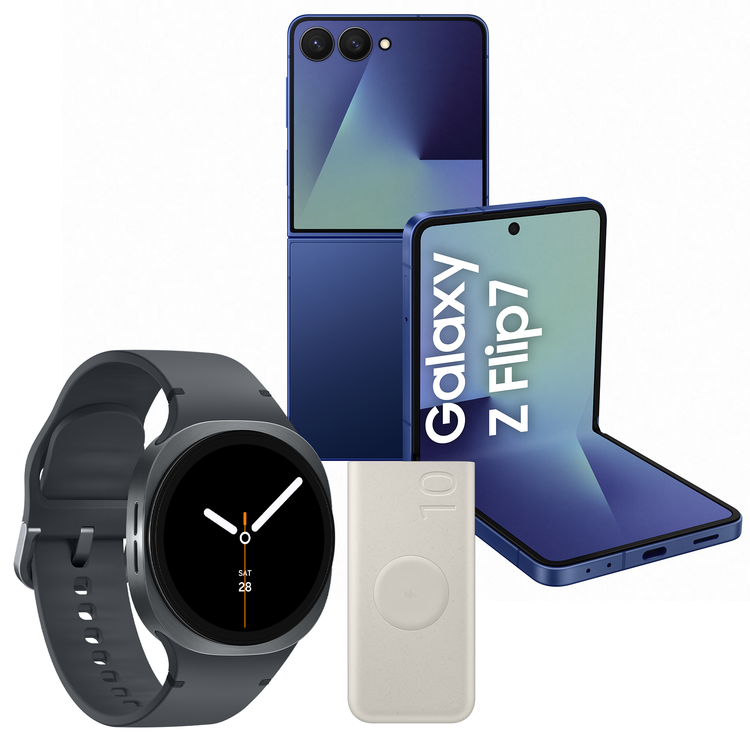 Samsung Galaxy Z Flip7 5G Dual SIM Smartphone - 12GB+512GB - Blue Shadow - Bonus Samsung Galaxy Watch8 40mm (Bluetooth) - Dark Grey & Samsung 10000mAh Wireless Power Bank. Worth $678