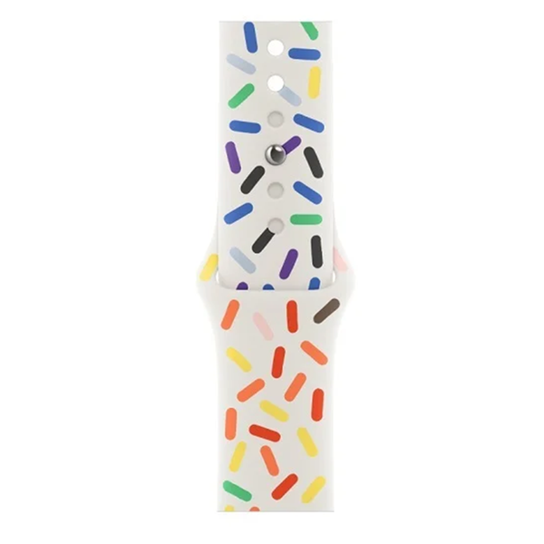 Apple 41mm Pride Edition Sport Band - M/L Featuring a joyful design, the Pride Edition Sport Band incorporates a full range of vibrant colors to celebrate the beauty and diversity of the LGBTQ+ community. In addition to the colors of the core Pride flag, black and brown symbolize marginalized LGBTQ+ communities of color, as well as those impacted by HIV/AIDS. Light blue, pink, and white honor trans and nonbinary people. -