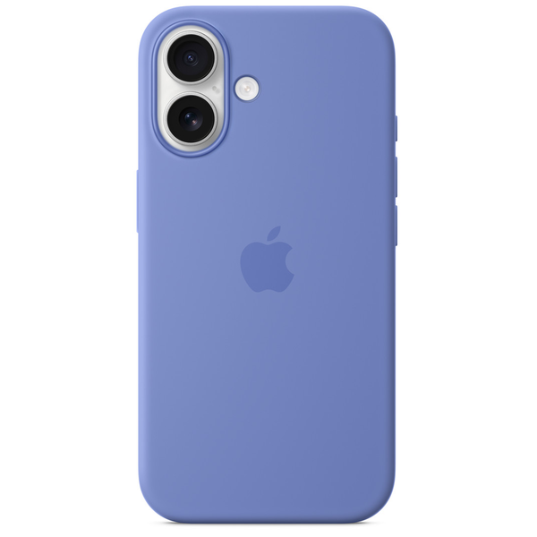 iPhone 16 Silicone Case with MagSafe - Periwinkle Designed by Apple to complement iPhone 16, the Silicone Case with MagSafe is a delightful way to protect your iPhone. Made with a 55 per cent recycled silicone material, the case has a silky, soft-touch finish on the exterior that feels great in your hand. And on the inside, there's a soft microfibre lining for even more protection. This case works seamlessly with Camera Control. It features a sapphire crystal coupled to a conductive layer to communicate finger movements to the Camera Control. With built-in magnets that align perfectly with iPhone 16, this case offers a magical attach experience and faster wireless charging, every time. When it's time to charge, just leave the case on your iPhone and snap on your MagSafe charger, or set it on your Qi2- or Qi-certified charger. Like every Apple-designed case, it undergoes thousands of hours of testing throughout the design and manufacturing process. So not only does it look great, it's built to protect your iPhone from scratches and drops.