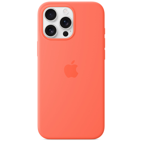 iPhone 16 Pro Max Silicone Case with MagSafe - Tangerine Designed by Apple to complement iPhone 16 Pro Max, the Silicone Case with MagSafe is a delightful way to protect your iPhone. Made with a 55 per cent recycled silicone material, the case has a silky, soft-touch finish on the exterior that feels great in your hand. And on the inside, there's a soft microfibre lining for even more protection. This case works seamlessly with Camera Control. It features a sapphire crystal coupled to a conductive layer to communicate finger movements to the Camera Control. With built-in magnets that align perfectly with iPhone 16 Pro Max, this case offers a magical attach experience and faster wireless charging, every time. When it's time to charge, just leave the case on your iPhone and snap on your MagSafe charger, or set it on your Qi2- or Qi-certified charger. Like every Apple-designed case, it undergoes thousands of hours of testing throughout the design and manufacturing process. So not only does it look great, it's built to protect your iPhone from scratches and drops.