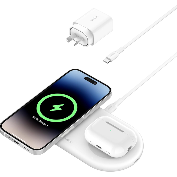 Belkin BoostCharge Pro 2-in-1 Magnetic Wireless Charging Pad with Qi2 15W -White