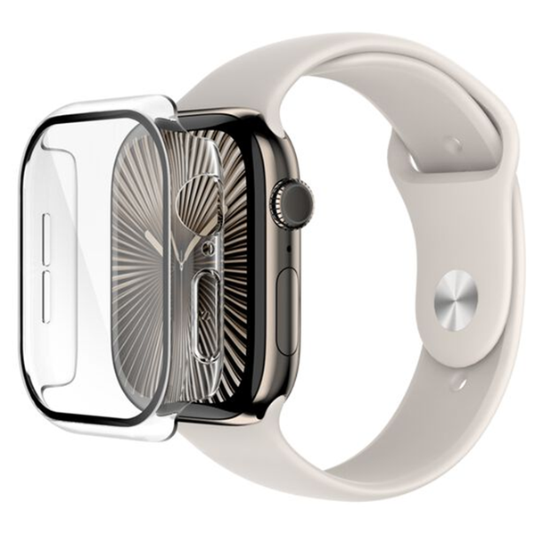 Belkin ScreenForce Apple Watch Series 10 (46mm/clear) TemperedCurve 2-in-1 Screen Protector with Bumper Case - Clear Get better coverage and 360° surround protection for your Apple Watch with this hybrid screen protector and bumper. Engineered from premium glass, the curved surface offers an original-screen feel while safeguarding your device from bumps, scratches, and other wear and tear. - 360° surround protection safeguards screen and bumpers - 9H scratch resistance prevents scuffs and damage from daily wear - Preserves look, feel and tactile screen experience- Crystal clear to view photos and videos - Precision-touch sensitivity through intelligent glass composition reacts like the original screen- Easy snap-on/snap-off application - Antimicrobial treatment protects the product from discoloration and degradation- Anti-fingerprint coating for added clarity - More than 81M screen protectors sold worldwide- 100% plastic-free packaging