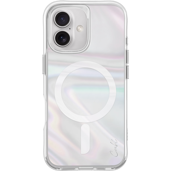 Imagine a holographic sheen that mirrors the dance of light on soap bubbles, reflecting iridescent colors with every gentle shift. Savon captures this fleeting magic, shimmering like a delicate rainbow with each subtle movement. - Translucent protection with superior hybrid impact defense- Shock-absorbing protection with raised camera lens bezel- Tough fade-resistant back with flexible bumper- Tactile, matching metallic side buttons- Made to endure impact from drops up to 8 feet- Supports magnetic wireless charging and accessories