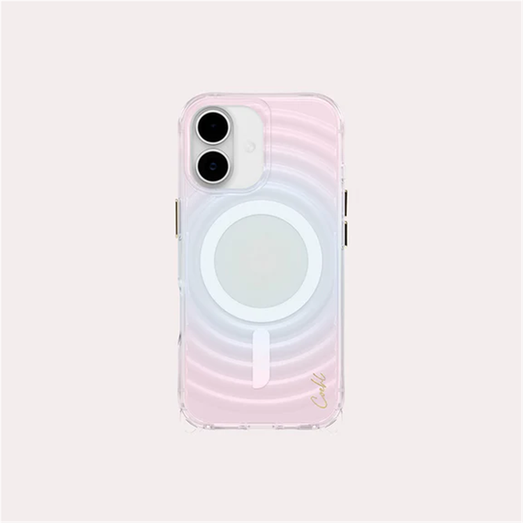 Inspired by the delicate dance of ripples, Véla captures the quiet elegance of motion, like the gentle waves that bloom from the first touch on undisturbed water. - Superior hybrid impact defense- Shock-absorbing protection with raised camera lens bezel- Tough fade-resistant back with flexible bumper- Tactile, matching metallic side buttons- Made to endure impact from drops up to 8 feet- Supports magnetic wireless charging and accessories- Comes with 2 interchangeable lanyard loops