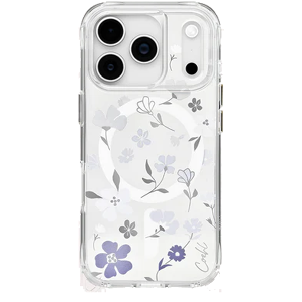 Inspired by the gentle bloom of lilac flowers kissed by morning dew, Amara captures a moment of delicate beauty, where sparkle meets soft petals in perfect harmony. - Translucent protection with superior hybrid impact defense- Shock-absorbing protection with raised camera lens bezel- Tough fade-resistant back with flexible bumper- Tactile, matching metallic side buttons- Made to endure impact from drops up to 8 feet- Supports magnetic wireless charging and accessories- Comes with 2 interchangeable lanyard loops