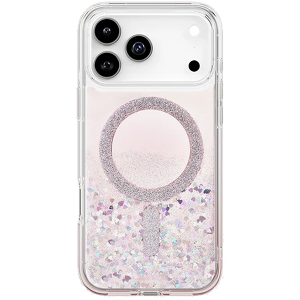 Soléa celebrates the radiant pulse of love, where every heart-shaped shimmer reflects warmth and joyful sparkle in motion. - Translucent protection with impact defense- Shock-absorbing protection with raised camera lens bezel- Made to endure impact from drops up to 8 feet- Supports magnetic wireless charging and accessories
