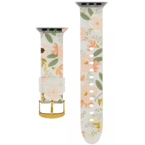 Wear an iconic Rifle Paper Co. print right on your wrist! The stylish, opaque Apple Watch band integrates seamlessly with your Apple Watch face and is complete with a metallic gold finished clasp.