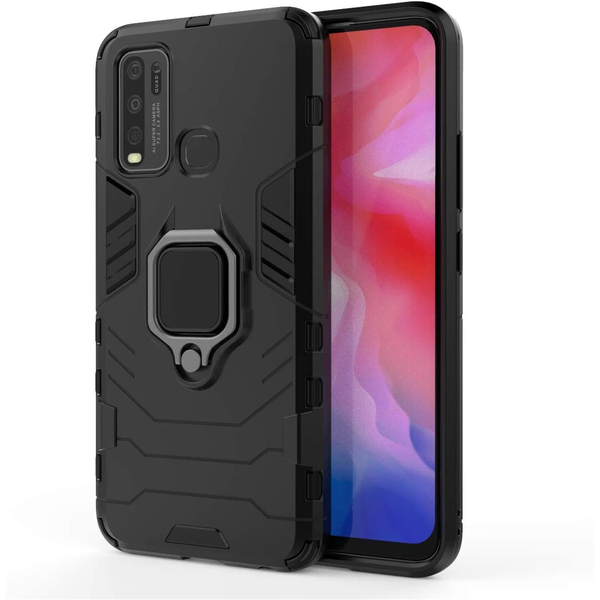 in 1 hybrid design.- Shock absorbent, shatterproof, and anti-scratch Shockproof Corners for ultimate drop protection.- Metal Plate allows to use it with Magnetic car holder.- Ring holder provides confidence and can be used as Kickstand.- Spider lines heat radiation can reduce damages of mobile phone parts.- Dual Layer Armour Defender Case Compatible with Vivo Y30. Smart and Subtle Ring Stand Convenience in your Hands. Transform your device into a compact, easy watch screen with the flick of a finger.