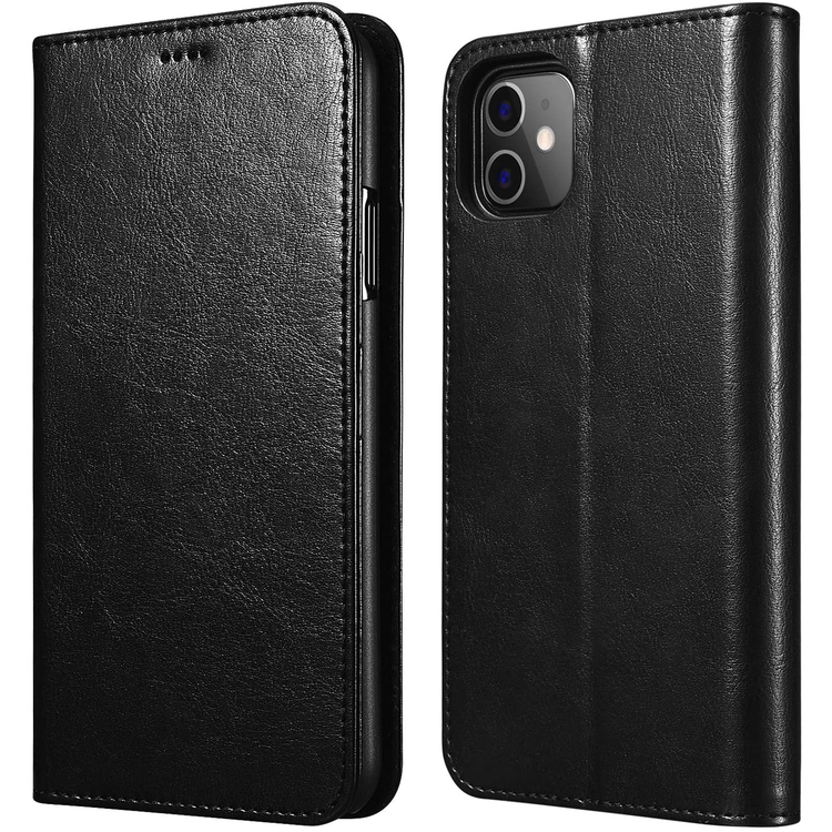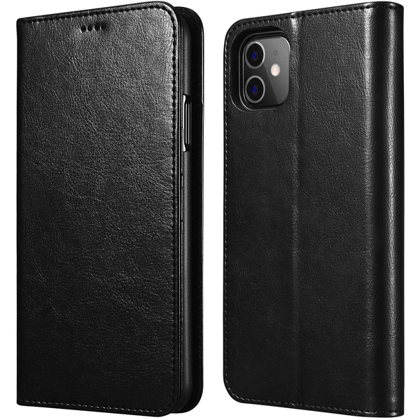 iPhone 11 Flip Wallet Case - Black, 3 Card Slots, Cash Compartment, Magnetic Clip