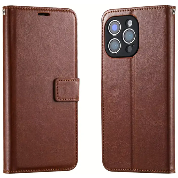 Flip Wallet Case iPhone 13 Pro - Brown 3 Card Slots, Cash Compartment, Magnetic Clip