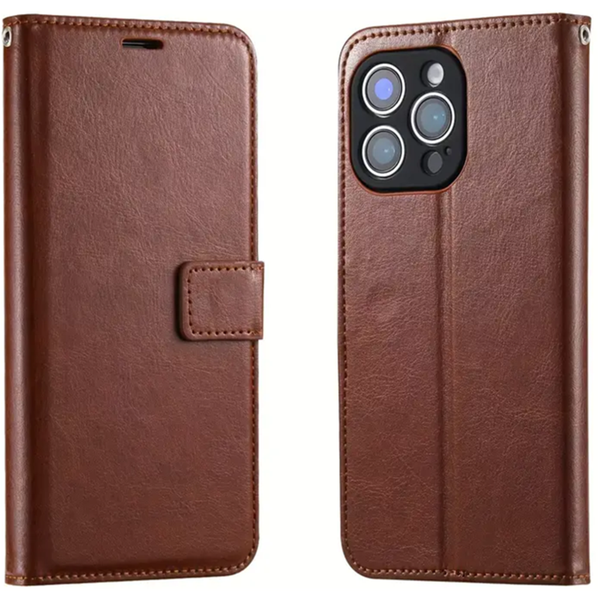 Flip Wallet Case iPhone 15 Pro - Brown 3 Card Slots, Cash Compartment, Magnetic Clip