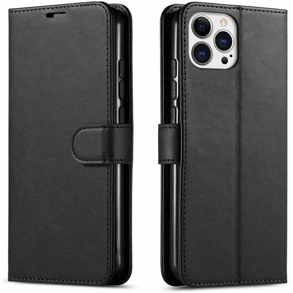 iPhone 16 Pro Max (6.9") Flip Wallet Case - Black 3 Card Slots - Cash Compartment - Magnetic Clip