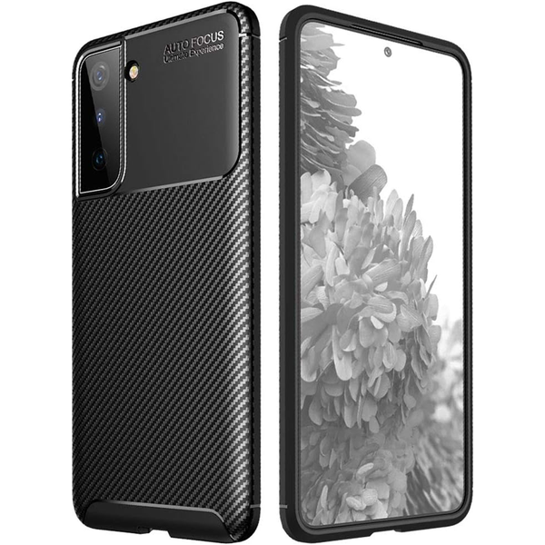 Carbon Fibre Rugged Case Galaxy S21+ - Black Ultra Slim, Anti-Stretch, Soft TPU Protective Shell Cover