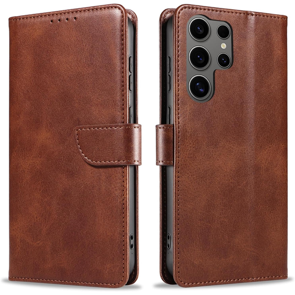 Generic Galaxy S26 Ultra (2026) Flip Wallet Case - Brown 3 Card Slots - Cash Compartment - Magnetic Clip
