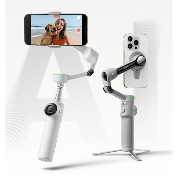 Insta360 Flow 2 Phone Gimbal Stabilizer Pro Creator Bundle / Stone Grey - Versatile Tracking in 200+ iOS Apps: The first and only gimbal series with Apple DockKit*. An advanced gimbal stabilizer for iPhone and the ultimate tool for content creation, video calls, online meetings, live streams, and more with 200+ compatible iOS apps.- Active Zoom Tracking: A first* for gimbals, Flow 2 Pro can track fast movement precisely, even at up to 15x zoom! Perfect for sports games, on-stage performances, and more (available for Pro &; Pro Max models of iPhone 12-16.)- Multi-Person Tracking: A smart phone gimbal that tracks and frames your whole group! Ideal for family gatherings, camping, meetups, and more. Get perfect framing where everyone shines.- Easy Setup &; Stable Footage: Simply mount your phone, unfold, and this cell phone gimbal is ready to go. 3-axis stabilization keeps every shot silky smooth, no matter the situation.- 360° Infinite Pan Tracking: Move freely and always stay in frame with the first foldable 360º gimbal. With a continuous pan rotation, Flow 2 Pro seamlessly tracks your every move.- All-in-One Content Creation Tool: All your essential tools in one AI phone gimbal. A built-in tripod for iPhone and Android shots, selfie stick, selfie mirror, teleprompter, power bank, and 10-hour battery life. With Flow 2 Pro you're all set for a full day's filming-no other gear needed.- Creative Shots with Free Tilt Mode: A new standard for foldable gimbals. Get a wider range of motion and keep the same angle as your phone moves up and down. Capture everything in a single, continuous shot.- Cinematic Brilliance: The top iPhone gimbal with Dolby Vision and Apple ProRes. Make every frame burst with vibrant colors, sharp contrast, and unmatched brightness. Capture breathtaking videos, preserve all the details, and perfect every shot with complete freedom in the edit.- AI-Powered Editing: Master your shots with AI-powered editing tools in the Insta360 app. FlashCut tells a story with your clips, editing together the highlights on beat to music.