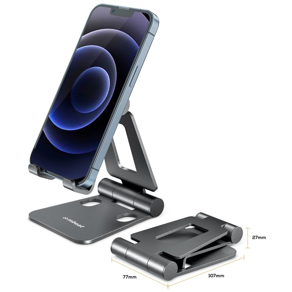 * Images are for illustrative purpose only. Smartphone and charging cable are not included. mbeat Foldable Hands Free Mobile &; Tablet Stand - Space Grey - Adjustable design for optimal workspace and viewing angle in any mode.- Collapsible, pocket-sized stand for easy portability and minimal space usage.- Solid aluminum alloy construction with anti-slip silicone pads for durability and stability.- Compatible with all smartphones, mini tablets, and handheld devices up to 10".- Versatile and reliable accessory for staying comfortable and organized. Compact and Durable mbeat S2+ mobile stand is made with solid aluminium alloy and equipped with anti-slip silicone pads to protect your device from wear and tear. The durable material and construction ensure that this stand can be used for a long time. Optimised Hands-free Comfort mbeat S2+ hands-free mobile stand features adjustable viewing angles and flexible height adjustment, so you can use your phone or mini tablet comfortably for prolonged periods of time. The robust hinges provide reliable support and stability, allowing you to angle your device as you need. Space-saving Portability This S2+ pocket-sized stand is designed to be collapsible and foldable, so you can take it with you wherever you go. The compact design takes up minimal space in your bag or pocket, making it easily portable. Organise Your Workspace mbeat S2+ stand allows you to optimise your workspace and use your phone or mini tablet at the optimal viewing angle in either landscape or portrait mode. You can also use it for charging, video streaming, making video calls and more. Multi-Device Compatibility mbeat S2+ stand is compatible with all smartphones, mini tablets and other handheld devices up to 10", so you can use it with your device of choice.