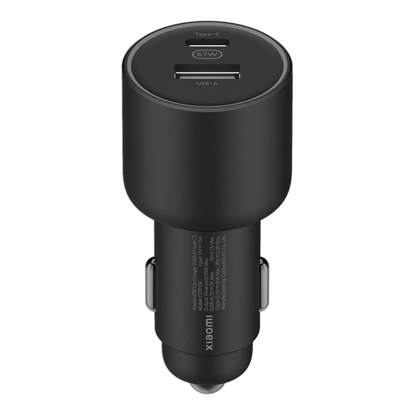Xiaomi 67W Car Charger (USB-A + Type-C) High performance 67W car charger, supporting fast charging for two devices Main functions - Dual port fast charging, compatible with a wide range of devices- Type-C port outputs up to 67W for charging Xiaomi phones- Smart detection of output current, wide compatibility including driving recorders and phones- Cycle light effect, multiple color changed according to output power