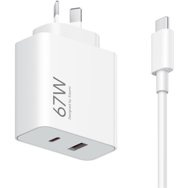 Xiaomi 67W GaN Fast Charging Wall Charger - High-Power GaN Technology: Equipped with GaN technology, the charger delivers 67W of power for rapid charging.- Dual-Port USB-A/C Compatibility: Features dual USB-A/C ports, supporting a wide range of devices with versatile charging options.- Multi-Device Charging: Ideal for charging phones, tablets, laptops, and watches, this charger is a multi-device solution.
