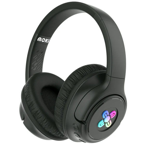 Moki Mixi Kids Volume Limited Wireless Headphones - LED Edition The Moki Mixi LED Volume Limited Wireless Headphones are the perfect blend of style, safety and fun for little ones. Featuring an 89dB volume restriction, designed to protect children's sensitive hearing and vibrant RGB LED lighting on each earcup. Also, the Mixi LED's are ideal for travel or compact storing thanks to the foldable earcups. Moki Mixi Headphones are dual-use meaning they can be used in both wired and wireless modes. - Volume limited 89dB - 38 hours play time- 1.5 - 2 hours charge time - 3.5mm audio cable included