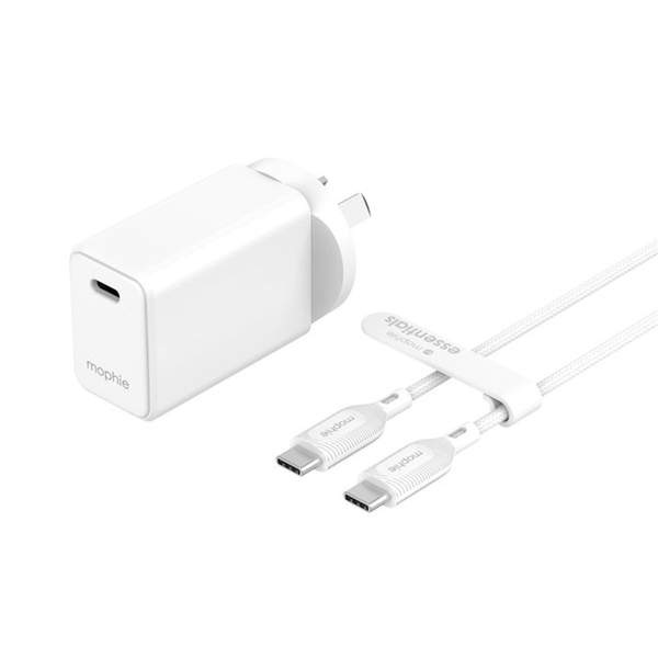Mophie Essential 30W PD Single Port - White, Wall Charger Bundle