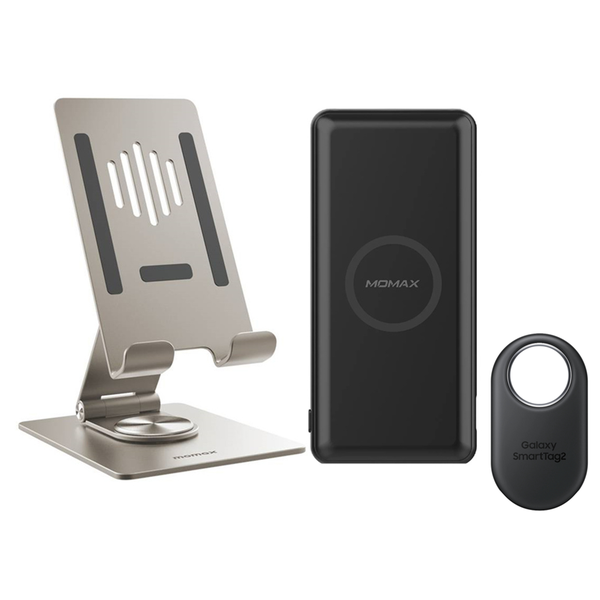 Momax Wireless Power Bank Wireless Powerbank, Premium Universal Phone Stand & Samsung Galaxy SmartTag2 Pack