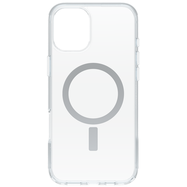 Show off your device without stressing its safety with Symmetry Series Clear for MagSafe. Ultra slim with a see-through finish, this clear case dials in your look while hugging your device's curves. And now it features built-in anchors so you can customize your experience with straps and charms. All of your phone's buttons, features and functions work flawlessly inside Symmetry Series Clear for MagSafe. Plus, the integrated magnets snap securely to MagSafe accessories. And however you set your phone down, the screen lip and raised edges around the camera add an extra layer of protection. - Precision designed opening for easy interaction with Camera Control- Drop+ | 3X as many drops as military standard (MIL-STD-810G 516.6)- Ultra-sleek design that flows with the lines of your phone- Built-in anchors let you connect phone straps and charms- Tactile buttons feel just like your phone's- Raised edges around the camera protect against hard hits- Screen lip keeps display hovering safely off surfaces- Rigid case design with reinforced corners- Built-in magnets snap firmly to MagSafe chargers and accessories- Simplify with OtterBox cases, power and accessories for MagSafe- Symmetry Series Clear contains a minimum of 40% recycled content, consisting of 100% recycled plastics- Works with OtterBox screen protectors- Hassle-free customer experience