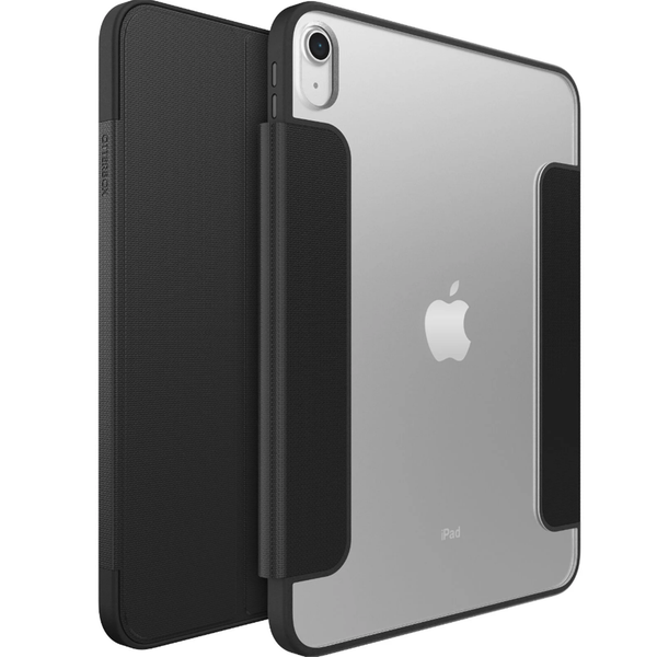 Shown on iPad (10th generation). Clear folio iPad Air 13-inch (M2) case protects against drops and scratches and converts into multiple positions for hands-free typing and viewing. The folio's microfiber lining guards the screen and holds tight with magnets, which also activate sleep/wake modes for quick-start functionality and battery preservation. - Hinged folio creates adjustable stand- Clear, scratch-resistant case- Supports Apple Pencil charging while in storage- Folio provides screen protection with strong magnetic closure- Magnets in folio activate sleep and wake modes- Multi-position folio stand:- Reading and note-taking- Viewing- Typing- Clear back for easy identification of asset tags and engravings*