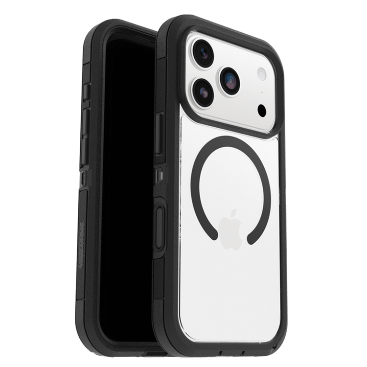 OtterBox iPhone 17 Pro (6.3") Defender Pro XT Series Phone Case - Black/Clear Legendary rugged protection in a sleek, dual-layer, see-through package. Defender Series Pro XT is built to 7X military standard drop defense. Its thinner, pressure-fitted frame keeps your device secure inside and the edges are rubber for a comfortable grip. The case has built-in magnets that snap to MagSafe accessories, full Camera Control access and port covers that stop dirt and dust from creeping in. Plus, this heavy-duty phone case has raised edges for added camera and screen defense. - 7X tested to Military Drop Standard (MIL-STD-810G 516.6)- Built rugged yet thin dual-layer case keeps phone secure with grippy rubber edges absorb that shock- Raised edges protect camera + screen- Port covers block dust and dirt- Clear design puts your device on display- Built-in anchors let you connect phone straps and charms- Built-in magnets work flawlessly with MagSafe accessories- Equipped with an integrated Camera Control button for seamless interaction - swipe, click, capture and tap into Apple's visual intelligence fast- Contains a minimum of 45% recycled content- Works with OtterBox Glass *Holster not included