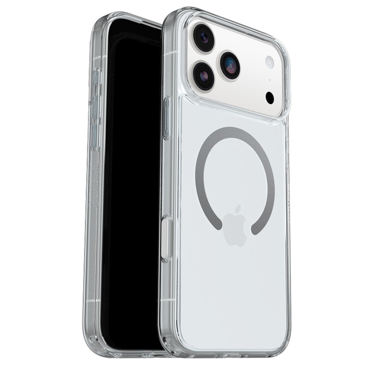OtterBox iPhone 17 Pro Max (6.9") Symmetry Series Phone Case - Clear Symmetry Series clear iPhone case safely and securely shows off your phone. Ultra slim with a see-through finish, this clear MagSafe compatible iPhone case dials in your look while hugging your phone's sleek shape and defending against hard drops. Every phone function works flawlessly, and the case features an integrated Camera Control button for seamless swiping, clicking and capturing. Built-in magnets snap securely to MagSafe chargers and accessories. The screen lip and raised edges around the camera provide an additional buffer for your camera and screen. 3X tested to Military Drop Standard (MIL-STD-810G 516.6)Raised edges protect camera + screenResists scratches to keep its like-new look longerUltra-sleek design flows with the shape of your phoneBounce-back buttons react to touchBuilt-in anchors let you connect phone straps and charmsBuilt-in magnets work flawlessly with MagSafe accessoriesEquipped with an integrated Camera Control button for seamless interaction - swipe, click, capture and tap into Apple's visual intelligence fastContains a minimum of 40% recycled contentWorks with OtterBox Glass