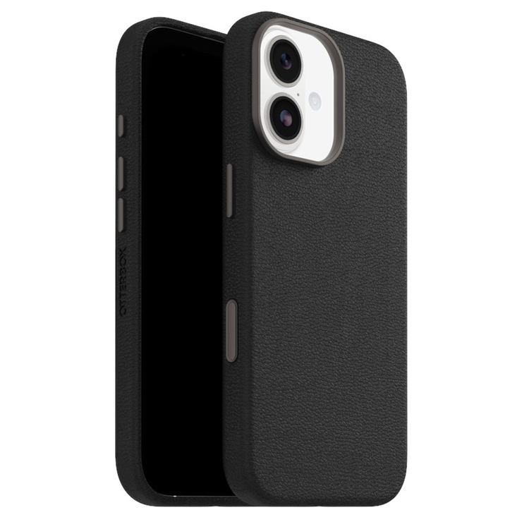 OtterBox iPhone 17 (6.3") Symmetry Cactus Leather Phone Case - Black Luxury iPhone case with premium cactus-based leather alternative elevates your style. This iPhone case is refined for elegance - from the metal buttons and inner felt backing to the metal camera crown and razor-thin profile. Not only does this case withstand drops, it also works with Camera Control and has powerful MagSafe magnets for charging. When you want to make a lasting impression, slip on Symmetry Series Cactus Leather Leather case. - 3X tested to Military Drop Standard (MIL-STD-810G 516.6)- Raised edges protect camera + screen- Beautiful cactus-based leather substitute crafted by Desserto from sustainably harvested organic nopal cactus*- Felt backing inside the case for an added touch of elegance- Metal buttons react to touch and elevate the tactile experience- Built-in magnets work flawlessly with MagSafe accessories- Equipped with an integrated Camera Control button for seamless interaction - swipe, click, capture and tap into Apple's visual intelligence fast- Contains a minimum of 45% recycled content- Works with OtterBox Glass- Recyclable retail package *Cactus Leather-based leather substitute is organically grown without the need for irrigation and harvested sustainably twice a year to protect the cacti