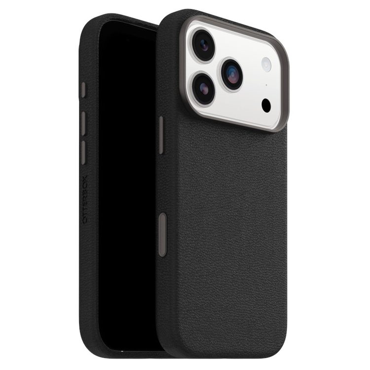 OtterBox iPhone 17 Pro (6.3") Symmetry Cactus Leather Phone Case - Black Luxury iPhone case with premium cactus-based leather alternative elevates your style. This iPhone case is refined for elegance - from the metal buttons and inner felt backing to the metal camera crown and razor-thin profile. Not only does this case withstand drops, it also works with Camera Control and has powerful MagSafe magnets for charging. When you want to make a lasting impression, slip on Symmetry Series Cactus Leather Leather case. - 3X tested to Military Drop Standard (MIL-STD-810G 516.6)- Raised edges protect camera + screen- Beautiful cactus-based leather substitute crafted by Desserto from sustainably harvested organic nopal cactus*- Felt backing inside the case for an added touch of elegance- Metal buttons react to touch and elevate the tactile experience- Built-in magnets work flawlessly with MagSafe accessories- Equipped with an integrated Camera Control button for seamless interaction - swipe, click, capture and tap into Apple's visual intelligence fast- Contains a minimum of 45% recycled content- Works with OtterBox Glass- Recyclable retail package *Cactus Leather-based leather substitute is organically grown without the need for irrigation and harvested sustainably twice a year to protect the cacti