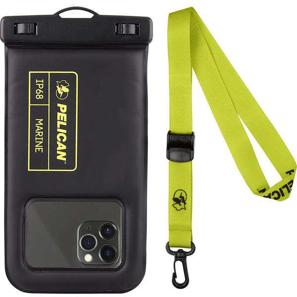 https://pelicanoutdoor.com/products/waterproof-floating-pouch-night-vision-black Use your phone without fear with this Marine Waterproof Floating Pouch with Lanyard from Pelican. The pouch is made to fit many different smartphones, as well as IDs, cash, and other small items. When sealed up, everything is protected as the pouch is IP68-rated to withstand being submerged in water. Whether you're on a boat or by the pool, if your phone falls in, built-in air cushions ensure that it will remain buoyant for easy retrieval. While inside the pouch, clear plastic panels let you continue to use your phone, snap pictures, and record video. The included bright neon green lanyard makes it easier to hold and easier to spot in the water. IP68 Certified Waterproof Protection A 3.3 feet/1 meter IP68 certified professional floating waterproof phone pouch is perfect for swimming pools, beaches, kayaking, fishing, surfing, sailing, skiing, boating, snorkeling, tubing, rafting, showering, sauna, other water park activities and to store your ID; This waterproof pouch will keep your phone fully functional and 100% protected from the water making it one of the best cruise, vacation, and travel essentials/accessories to have (Best for Phone Screen Sizes Up to 6.1 Inches) Precise Design &; Sensitive Touch Pelican Marine Series waterproof case has an innovative design for easy access to side buttons; Made with high-quality soft TPU material and a Clear Window design on the front for a delicate touch and quick response making it easy to see videos and check your email Fully Protective This phone pouch comes with a detachable cell phone lanyard that can be worn around your neck or wrist to easily access your phone or ID, allowing you to enjoy your adventures to the fullest; Secure Lock Mechanism allows you to firmly lock and unlock the phone pouch, keeping it completely sealed underwater Underwater Photography Take pictures anywhere, anytime! With the transparent material, you can have direct and proper access to the touch screen and camera; Sensitive touch allows you to use your phone as an underwater camera, to take sharp and clear photos and videos without removing your device from the waterproof phone bag