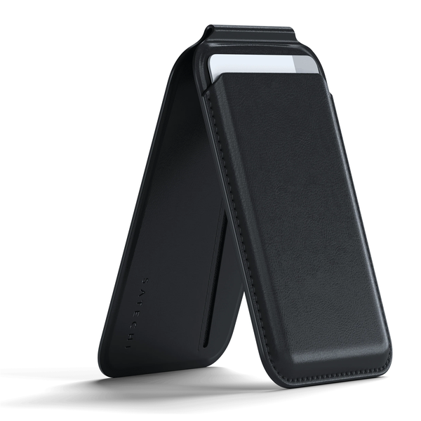 The Satechi Vegan-Leather Magnetic Wallet Stand perfectly combines style, functionality, and sustainability - a powerful add-on accessory and the perfect companion for your everyday needs. Designed with MagSafe-compatible technology, this sleek vegan-leather wallet effortlessly and securely attaches to your iPhone in a snap connection so you can conveniently carry your cards, ID, or even cash wherever you go. The versatile magnetic wallet is also designed to double as a durable and sturdy stand for your iPhone, giving you a hands-free option to browse the web, stream videos, or hop on a FaceTime call in both portrait and landscape modes. Magnetic Connection Seamlessly attach the wallet to your iPhone with MagSafe-compatible technology. The powerful snap connection ensures a secure, simplified carry you can feel confident about. Minimalist Design Our minimalist wallet offers all the storage you need without the extra bulk of traditional wallets, keeping your essentials neatly organized and easily accessible. Doubles as a Stand Transform into a sturdy phone stand on demand. The flexible 160° hinge allows you to effortlessly switch between your wallet and a hands-free viewing experience in portrait or landscape mode.