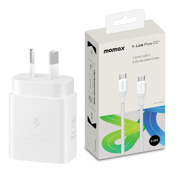 Momax 1-Link Flow 100W 3M USB-C To USB-C PD Fast Charging Cable White Support Apple iPhone, iPad Pro. iPad Air, Samsung, Oppo, Oneplus, Nothing phone Fast Charging, Translucent design, built with high quality TPE &; Silicon The USB cable is made of TPE plastic to make it very flexible and functional, the USB-C connector has overheating protection that prevents the cord from melting and damaging your devices when charging. This cable is slightly longer than the standard length of the cables that usually come with phones. Practical when charging on a train, in a cafe or in office. Compatible with most common and popular electronic devices. Support devices that use USB-C for charging and data transfer. For any devices requiring or suggesting to use official charging products, please seek advice with official parties before using this accessory. - USB-C to USB-C Cable-