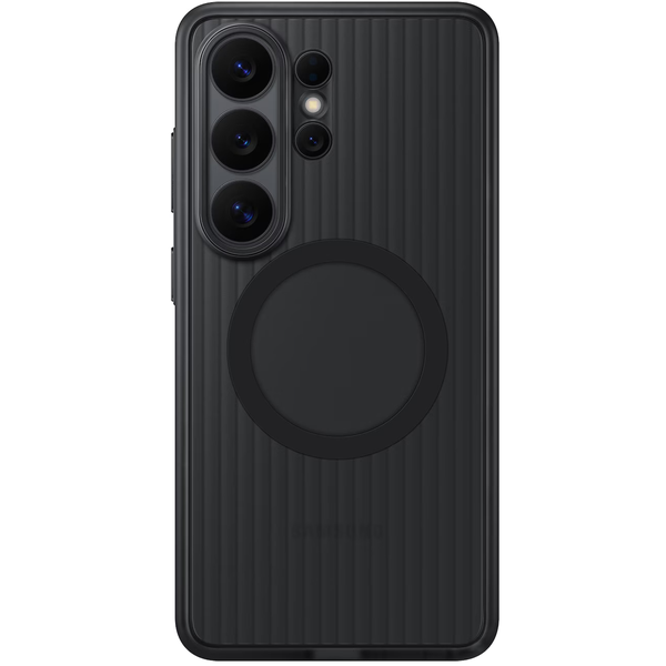 The Rugged Magnet Case absorbs shock from drops and resists scratches and impact. Tested to 5x the Military Grade Standard drop test (MIL-STD-810H), it's built for repeated impact resistance. It passed 5 consecutive tests of 26 drops from 1.22 m, covering all faces, edges and corners for all-around protection. Raised edges protect the screen and camera, while grooved sides enhance grip. A padded inner layer adds cushioning for comfort in use. Built-in magnets help align your Galaxy S26 Ultra for fast wireless charging and allow easy attachment of compatible magnetic accessories.