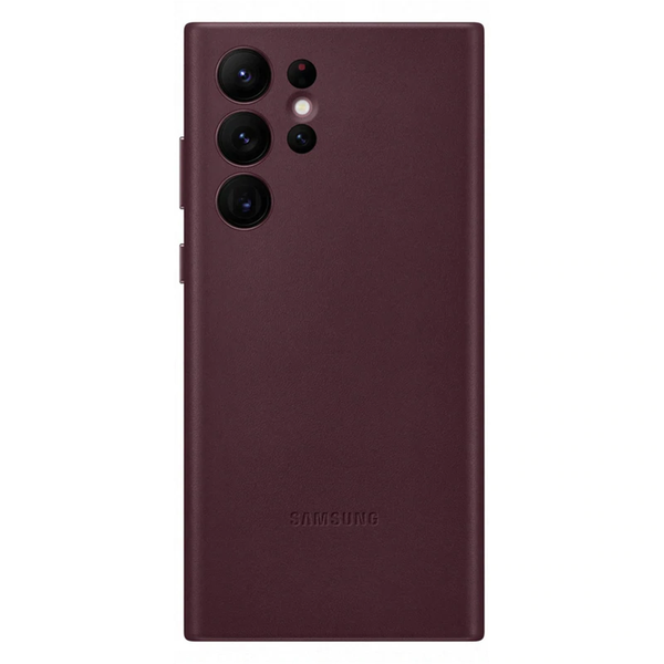 Samsung Galaxy S22 Ultra 5G Leather Cover - Burgundy Make a statement in genuine leather. The supple, slim fitting case protects your phone's front, sides and back - and looks good doing it. - Make a statement in genuine leather- Slim fitting case protects your phone's front, sides and back