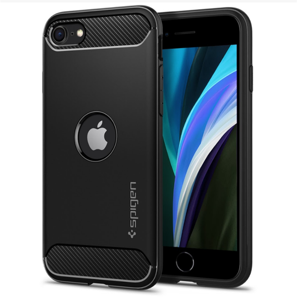 Spigen iPhone SE (2020) Rugged Armor Case- Resilient Shock Absorption and Carbon Fiber Design- Flexible TPU case with interior spider-web pattern &; Raised lip to protects screen- Air Cushion Technology for shock absorption- Tactile buttons for solid feedback and an easy press- Case Compatible with Apple iPhone SE (2020) / iPhone 8 (2017) / iPhone 7 (2016)
