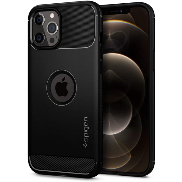 iPhone 12 / 12 Pro Rugged Armour Phone Case Black Inspired by car design, Rugged Armor® secures the iPhone 12 / iPhone 12 Pro (6.1-inch) in a sleek and streamlined body. Its slim frame is textured with carbon fiber detailing and subtle glossy accents. Built for Life - The original carbon fiber case inspired by car design.- Mil-grade certified drop protection with Air Cushion Technology.- Smooth matte finish keeps fingerprints away for a lasting clean look.- Grip detailing all-around for an firm and enhanced hold.- Compatible with wireless charging and Spigen screen protectors.