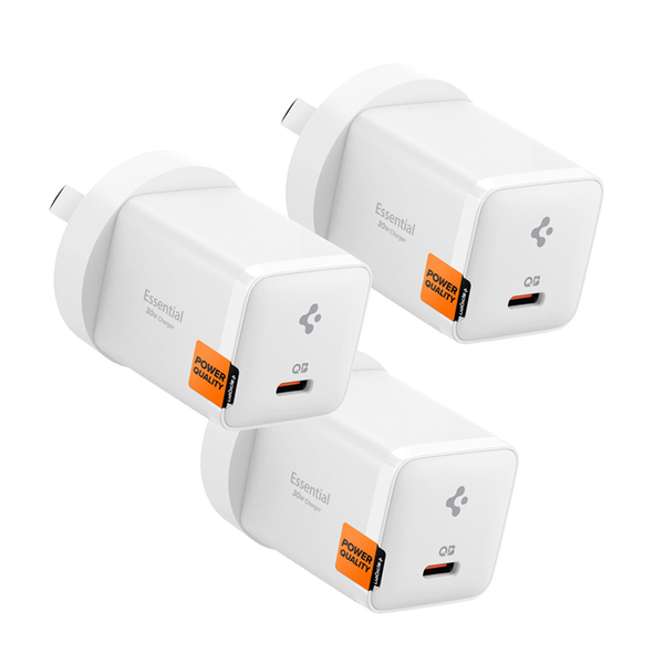 Spigen Essential 30W USB-C PD GaN Fast Charging Wall Charger - (3 Pack) - White - Up to 30W PD Fast Charging - Compact Design - Support Apple iPhone, iPad, Samsung Smart Phone PD Fast Charging